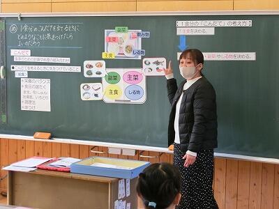 11月15日(水) 5・6年生の家庭科の授業で、三ヶ所小学校の栄養教諭の吉田先生に来ていただきました。
