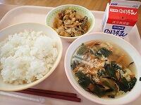 今日の給食は、ご飯に煮物や和え物を組み合わせた「和食」の献立でした。平成25年に、「和食」がユネスコの無形文化遺産に登録されました。日本では、季節や地域ごとに、新鮮な食材を生かした料理が昔から作られてきました。それぞれの季節にとれる旬の食材を使い、昆布や煮干しからだしをとり、だしのうまみで汁物や煮物を作ります。この「うまみ」というものも他の国にはない食文化です。自然を大切にしてきた人たちの食文化を私たちも受け継いでいきたいですね。