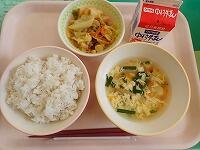 麦ごはん 牛乳 ニラ玉スープ タッカルビ