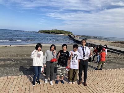 PR活動を終え、青島に移動して散策をしました。広々とした海をバックにさわやかな笑顔のみんなです。