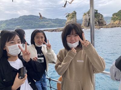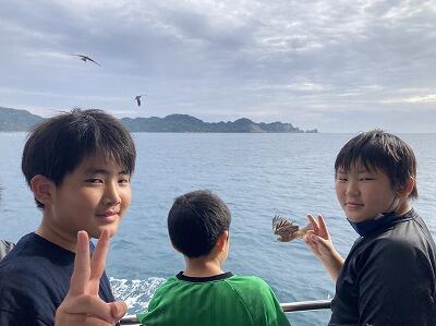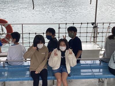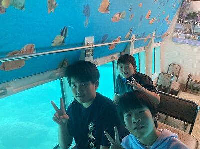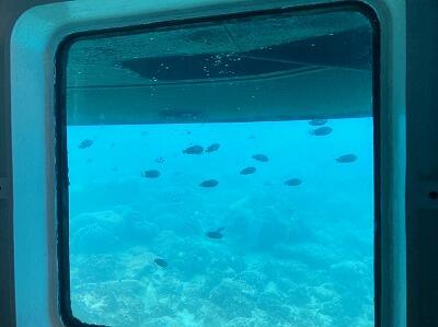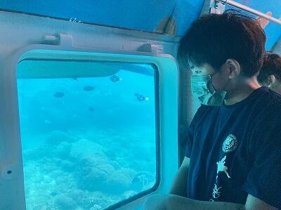 水中観光船マリンビューワーなんごうに乗りました。ふだんは見ることができない海中の様子を船底のガラスごしに見ることができて、みんな大興奮です!