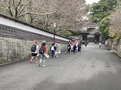 飫肥へ移動して、班別自主研修に入りました。自分たちが決めたコースを散策します。知らない道を自分たちだけで歩くのは、ちょっとした冒険ですね。マップをよく見て頑張ってくださいね。