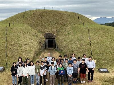 西都原考古博物館では屋外の古墳も見ることができました。昔の人々がこんな大きな墓を作ったことにみんなびっくりしたことと思います。