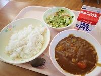 五ヶ瀬町には、美味しい食材が沢山あり、地場産物を使った給食がよく登場します。今日のカレーにも五ヶ瀬町で有名な「特ホル」が使われています。特ホルには、豚のハラミ肉と肩ロース肉が使われ、宮部精肉店 秘伝のタレにつけ込んであるので、そのまま焼いて美味しくいただけます。今日は、皆さんの大好きなカレーに入れてみました。彩り豊かなサラダと一緒に美味しくいただきましょう。