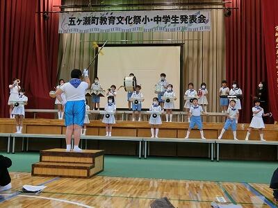 五ヶ瀬町内の小・中学校、五ヶ瀬中等教育学校の児童生徒が集まって、意見発表したり、合唱、合奏などを発表したりしました。鞍岡小学校のみんなも鼓笛を元気に演奏しました。