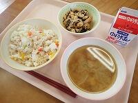 パプリカごはん 牛乳 鶏ごぼう汁 ひじきの五目煮