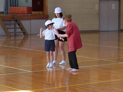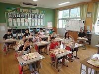 おたすけ隊の方に来ていただいて、踊り方を丁寧に教えていただきました。手の出し方や足の運び方などを習いながら、みんな真剣に練習できました。アドバイスのおかげでみんなの動きがそろって、上手に踊れるようになってきました。運動会本番に向けてさらに練習を重ねていきます。