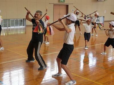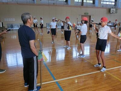 9月11日(月) 運動会に向けて、おたすけ隊の篠原作弘 様に来ていただき、長刀の練習を行いました。体育館には勇ましい「やーっ」のかけ声がたくさん響いていました。みんな、腰をぐっと落とした姿勢がとてもかっこよかったです。鞍岡地区の伝統をしっかりと引き継ぎ、運動会では全校児童で披露いたしますので、どうぞ楽しみにされてくださいね。