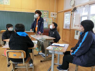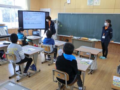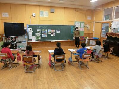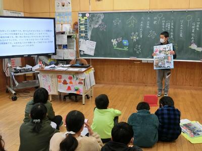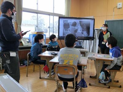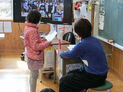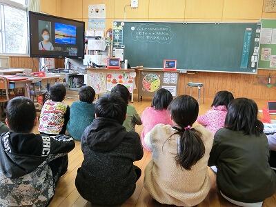 学校の様子や行事、地域の様子などについてプレゼンテーションなどを利用して紹介し合いました。同じ県内の学校なのに、気温や周りの地形などは大きく違っていて、テレビ画面に映し出される発表に、お互いにとても驚いていました。それぞれの学校のよさをたくさん知ることができるとてもよい機会となりました。いつか相手の学校に訪れたいと思った子達がたくさんいました。