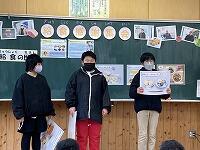 給食感謝集会のスペシャルゲストに三ヶ所小学校栄養教諭の吉田先生と調理員の健夫先生に来ていただきました。健夫先生には、子どもたちからインタビューをさせていただきました。吉田先生には、栄養教諭の仕事内容や私たちのからだを作っている食について、また、給食ができるまでについてお話しをしていただきました。そして保健給食委員会から、委員会の活動内容の紹介と給食の歴史について発表をしました。食に関わる全ての方やいのちに対して感謝の気持ちを持ち「いただきます」「ごちそうさまでした」が言えるといいですね。