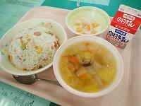 チャーハン 牛乳 白菜と肉団子のスープ フルーツヨーグルト