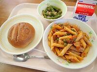 米粉パン 牛乳 ペンネボロネーゼ アスパラソテー