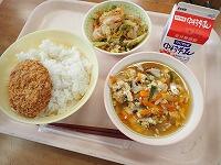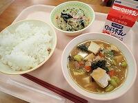 麦ごはん 牛乳 厚揚げの中華煮 春雨の酢の物