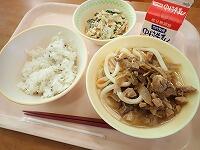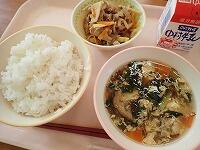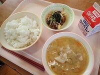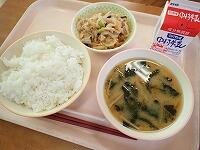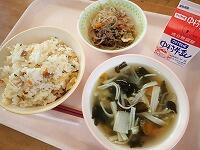 キムタクごはん 牛乳 チャプチェ わかめスープ