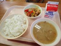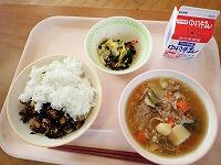 麦ごはん 牛乳 Soyかけ じゃがいものそぼろ煮 白菜のおかか和え