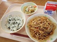 減量わかめごはん 牛乳 焼きそば バンバンジーサラダ
