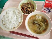 麦ごはん 牛乳 白菜と肉団子のスープ いりこ入りきんぴら