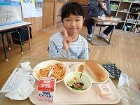 今日はひむか地産地消の日の献立です。「ひむかナポリタン」は、宮崎県産の千切大根を使ったスパゲティです。宮崎県では、各地でたくさんの千切大根が作られ、宮崎県を代表する特産品の一つでもあります。これを和え物だけでなく、いろいろな料理で食べてほしいと思い、考えたのがひむかナポリタンです。シャキシャキとした歯ごたえが、スパゲティにからまっておいしいですよ。今日は、宮崎県のおいしい食材を味わっていただきました。
