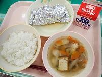 麦ごはん 牛乳 根菜ごま汁 魚ときのこのホイル焼き