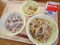私たちが、毎日食べているお米がごはん以外の食べ物になっていることを皆さんはしっていますか?給食にでてくるものでは、米粉パンやビーフンがそうです。ビーフンは、粘りの少ない米を粉にしたものをこね、熱いお湯の中に麺状に押し出したものです。中国や台湾で、よく食べられています。今日は、野菜や豚肉といっしょに炒めて焼きビーフンでした。