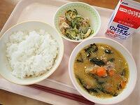 麦ごはん 牛乳 チキントマトカレー 海藻サラダ
