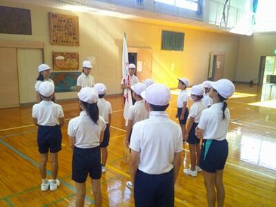 9月2日(火)体育館で結団式がありました。団長、副団長、リーダーの自己紹介の後、団の色が決まりました。その後運動場に出て、開閉会式や入場の練習をしました。