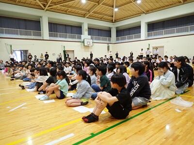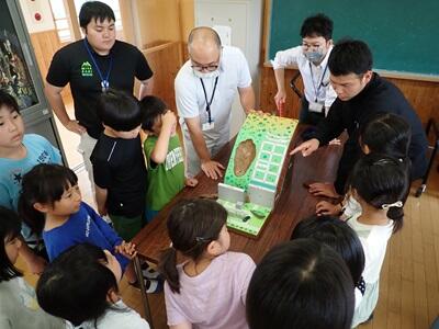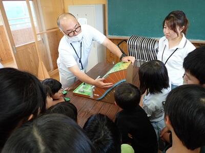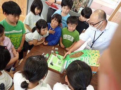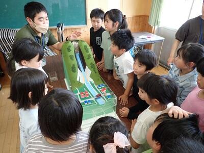 6月6日(金)西臼杵支庁土木課と五ヶ瀬町役場建設課の方々による「土砂災害防止教室」が行われました。模型を使って土砂災害について分かりやすく説明していただきました。また、五ヶ瀬町のハザードマップを使って土砂災害の危険箇所を教えていただき、放課後に教えていただきた危険箇所を確認しながら集団下校しました。
