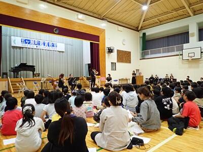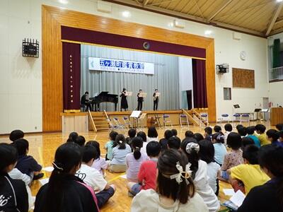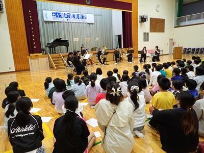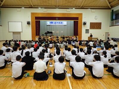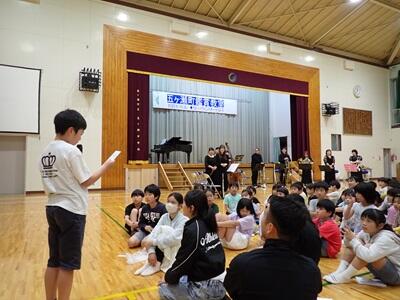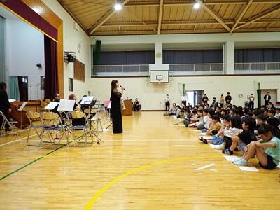 6月10日(火)五ヶ瀬町内の小中学生対象に鑑賞教室が行われました。今回は音楽鑑賞で、延岡市を拠点に活動するカミーノウインドオーケストラによる演奏でした。五ヶ瀬町内の先生方も出演されました。たくさんの木管楽器や金管楽器について知り、その美しい音色を楽しむことのできた時間でした。
