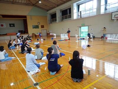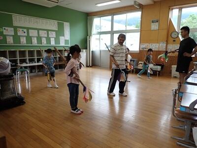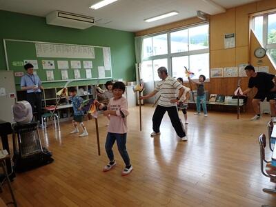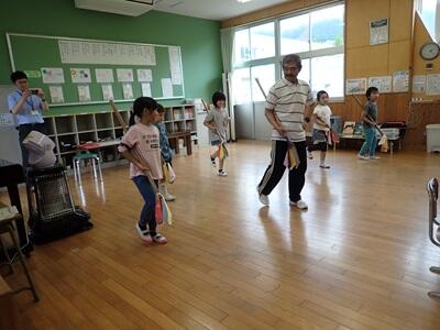 6月11日(水)祇園神社夏季例大祭に向けて1年生が取り組んでいる長刀練習に、長刀保存会の方が来られて直接指導してくださいました。保存会の方から「声が大きくていいね。」と褒められました。難しい動きに苦戦しながらもあきらめずに頑張っている1年生です。