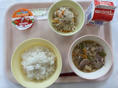 麦ごはん 豚肉きのこ丼 まだか漬け アセロラゼリー 牛乳