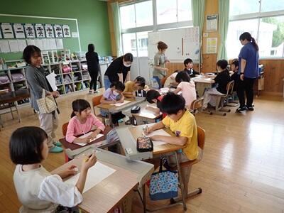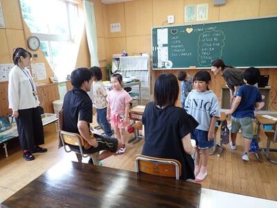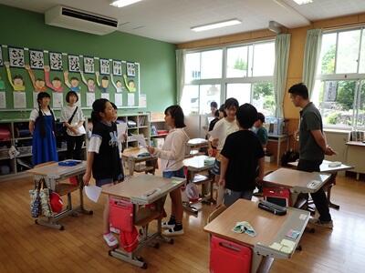 6月18日(水)五ヶ瀬中学校生が職場体験学習(中2)とジョブシャドウイング(中1)のため来校しました。学級担任の先生に質問したり、小学生と一緒に昼休みを過ごしたりしてくれました。また、鞍岡小鼓笛隊へのアドバイスもしてくれました。職場体験学習は19日(木)まで行われます。