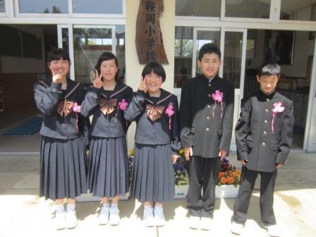 4月10日(火)今日は、五ヶ瀬中学校の入学式でした。3月に卒業した5名が、中学校の制服姿を見せに来てくれました。卒業してから20日足らずですが、制服姿はとてもりりしく、あっという間に大人になったなあと感じました。ちょうど給食時間だったので、在校生にあいさつし、こんな中学生になりますと語ってくれました。少し誇らしげな中学生と制服姿をまぶしそうに見ながら、自分のことのように嬉しそうな表情の在校生たちでした。