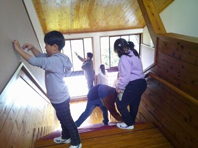 3月18日(水)クラブ活動や学習発表会、お別れ交流遠足などでお世話になった祇園テラス鞍楽(旧鞍岡中学校)の掃除を全校で行いました。11月の「鞍小子ども会議」で発足したボランティアグループが中心となって、玄関やトイレ、図書室、多目的ホール、廊下、階段などを掃除することができました。