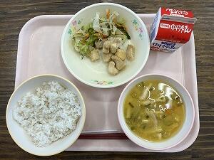 麦ごはん ほうとう汁 ふかの竜田揚げ そくせき漬け 牛乳