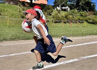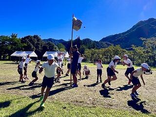 9月13日、祇園山に見守られながら、運動会予行練習を行いました。