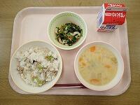 麦ごはん 牛乳 大根のみそ汁 きびなごの揚げ煮 ごま和え