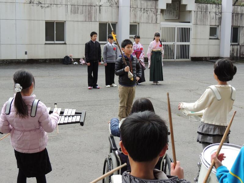 4名の卒業生を無事、送り出すことができました。式後は、新しいメンバーの鼓笛隊が演奏をして、卒業生を見送りました。