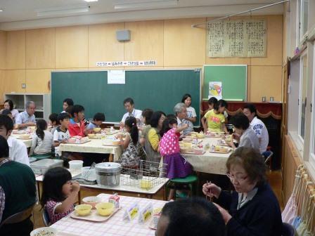 平成28年6月19日(日)、6月の参観日が行われました。この日は、祖父母参観日ということで、いつものお父さんやお母さんに加えて、おじいさん・おばあさんたちも参観してくださいました。たくさんの方が見守る中、にぎやかな参観風景となりました。子どもたちもすごくはりきっていました。また、給食は、「わくわくランチサービス」という企画で、今日は子どもたちと参観日に集まってくださった方々とが一緒に食べました。みんなで食べる給食は味もまた格別でした。