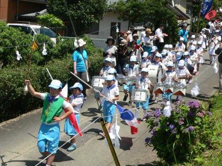 あまりにも天気がよすぎて、子どもたちの熱中症等が心配されましたが、みんな元気に、しっかりと大役を果たしてくれました。これも、教育振興会(PTA)会長さんをはじめ、子どもたちの着替えをお手伝いくださった保護者や祖父母・地域の皆様、道具を運んでくださった祭り実行委員会の皆様の御協力のおかげと、大変感謝いたします。ありがとうございました。