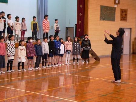今年の発表会では、終わりのことばの後に、会場全員で鞍岡小学校の校歌を大合唱するという試みをしました。一緒に歌うことで、子どもたちと卒業生や保護者・祖父母・地域のみなさんの心が一つになり、改めて地域の学校「鞍岡小」の心をみんなで共有することができました。