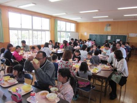 今日は、本年度初めての参観日でした。1年生にとっては、初めての参観日です。保護者の皆さんの前でとても張り切っていました。教育振興会総会も行われました。保護者は、全家庭が参加され鞍岡小の結束の固さを感じました。参観授業に先立ちわくわくランチも行われました。わくわくランチとは、保護者や地域の方を給食に招き、子ども達と一緒に会食するというものです。本年度初めてのわくわくランチには、子ども達と同じ数ほどの保護者が参加されました。いつものふれあいルームでは入りきらず、特別活動室でいつもの2倍ほどの人数で賑やかに会食しました。保護者の隣で、にこにこと笑顔で給食を食べる子ども達の姿が印象的でした。