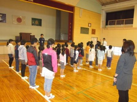 今日は、朝の時間に集団行動の指導がありました。36人の少人数でも集団行動の基本を身に付けることは大切なことです。「きをつけ」「やすめ」をはじめに、行進や駆け足の仕方も学びました。1年生は、初めてのことなのでとても難しかったようです。特に、回れ右はふらふらしながら回っていました。でも、先生方や上級生が優しく教えてくれたおかげで、少しは様になってきました。普段でも,きびきびした行動ができる鞍岡小学校の子ども達ですが、今日の指導でさらに意識が高まったことでしょう。