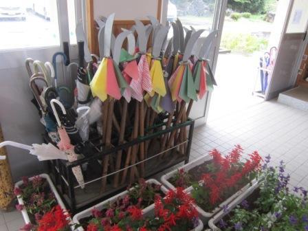 9月17日(日) 秋季運動会を予定していた日に台風がやってきました。臨時休校となり、お昼前後は、ものすごい豪雨でした。なんと、学校から見える祇園山に、普段はない滝が現れていて驚きました。校区内も、あちらこちらで水があふれ出し、通行止めになるところもありました。これ以上降ると危険と思われた頃に雨が小降りになり、風もさほど強くなかったので、大きな被害はなかったようです。それでも、スキー場付近は、24日(日)に予定していたトレイルランの大会が実施できないほど、山道が荒れてしまったようです。大会運営のために運動会に参加できない方もおられたので、その点はよかったのですが。