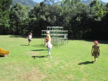 今日は、空気も澄みすっかり秋の雰囲気。最低気温は、なんと9.8℃、ついに10℃を下回りました。昼間は、雲一つない秋晴れ。室内にいるのがもったいないような天気でした。子どもたちは、これまで運動会に向けて昼休みも鼓笛や応援等の練習をしてきました。そんな精一杯の生活からやっと解放された久しぶりの晴れた昼休み。給食時間から「今日は、昼休みやっと遊べます!」と嬉しそうに話す子もいました。昼休みになるとみんな外にかけだし、大きな声と笑顔で走り回っていました。先生たちも、一緒に遊んで子どもたちも嬉しそうでした。なんてすてきな日なんでしょう。