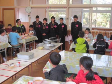 4月10日(火)今日は、五ヶ瀬中学校の入学式でした。3月に卒業した5名が、中学校の制服姿を見せに来てくれました。卒業してから20日足らずですが、制服姿はとてもりりしく、あっという間に大人になったなあと感じました。ちょうど給食時間だったので、在校生にあいさつし、こんな中学生になりますと語ってくれました。少し誇らしげな中学生と制服姿をまぶしそうに見ながら、自分のことのように嬉しそうな表情の在校生たちでした。