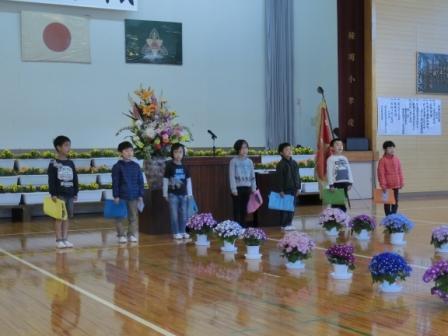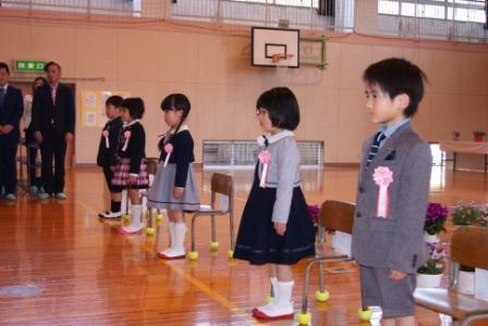 4月12日(木)は、入学式でした。今年は、5人の子どもたちが入学してきました。きらきらと目を輝かせながら入場する姿に、保護者も来賓も、在校生もみんな笑顔でした。式の中では、2年生が、学校の様子を発表してくれました。1年前に入学してきた子どもたちも1年経って立派に成長し、堂々と発表してくれました。式の中でも姿勢を崩さず立派な態度だった新入生。これからの活躍が楽しみです。