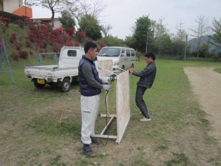 4月23日(月)、保護者の方が2名来られ、指揮台の修理及びペンキ塗りをしていただきました。