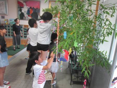 今日は、昼休みに全校みんなで七夕飾りづくりをしました。これは、5月に行われた鞍小こども総会で1年生から提案された意見が採択されて全校で取り組むことになったものです。6年生が準備をして、上級生が下級生に教えながらみんなで楽しくつくりました。次は、短冊に願い事を書いて飾ります。