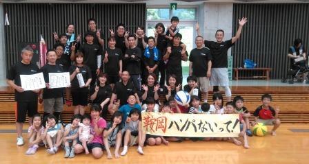 6月24日(日) 五ヶ瀬町PTAバレーボール大会が行われました。鞍岡小からは、2チーム、保護者、教職員27名が参加しました。先日まで行われていた町体力づくりバレーボール大会でも、鞍岡はベスト4に3チーム残り、優勝しています。その勢いのままに、予選を軽く勝ち上がりました。準決勝の組合せは抽選でしたが、運命のいたずらか鞍岡同士が対戦することになりました。大接戦となり21対20でAチームが勝利、そして、決勝でも三ヶ所小チームに勝ち見事優勝しました。AOPのTシャツを着て一致団結した鞍岡小チームは、「半端ない」強さでした。午後の懇親会も半端なく盛り上がったのは言うまでもありません。