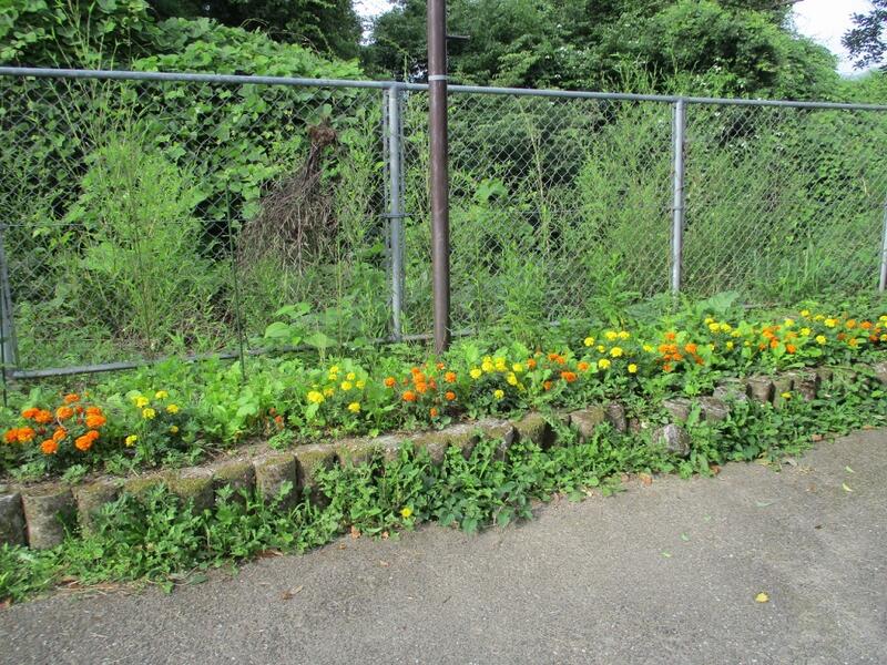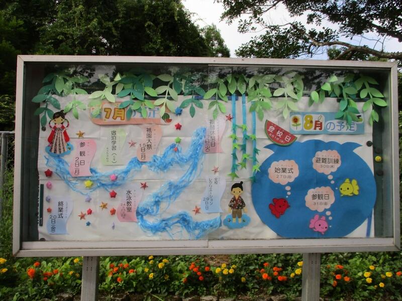 6月28日(木)梅雨の晴れ間に、鞍岡工務店(仮称)が、大繁盛です。教頭先生や支援員の先生を中心に、①コウモリよけ網設置、②玄関前黒板(7月行事)、③巣箱設置、④国道横通学路の除草など、とてもきれいに整備されつつあります。また、地域の方々にも協力していただき、⑤学校花壇に花の苗を植えてもらいました。どんどん整備される鞍岡小学校です。